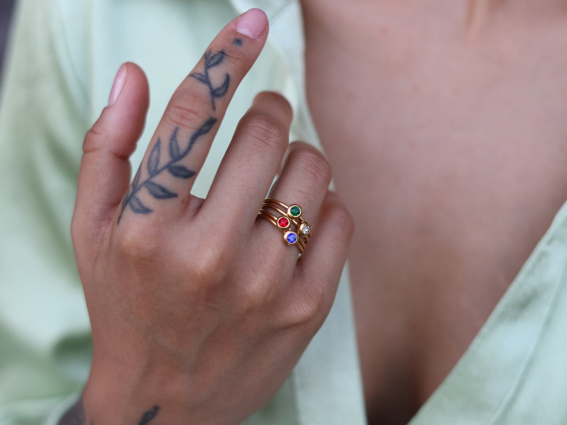 18K Gold Filled Emerald, Ruby, Sapphire, Cubic Zirconia Birthstone Ring, Christmas Gift, New Year Gift, Birthday Gift, Velentine's Day Gift, Mother's Day Gift, Anniversary Gift, Minimalist Gift, Everyday Jewelry
