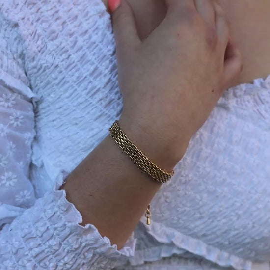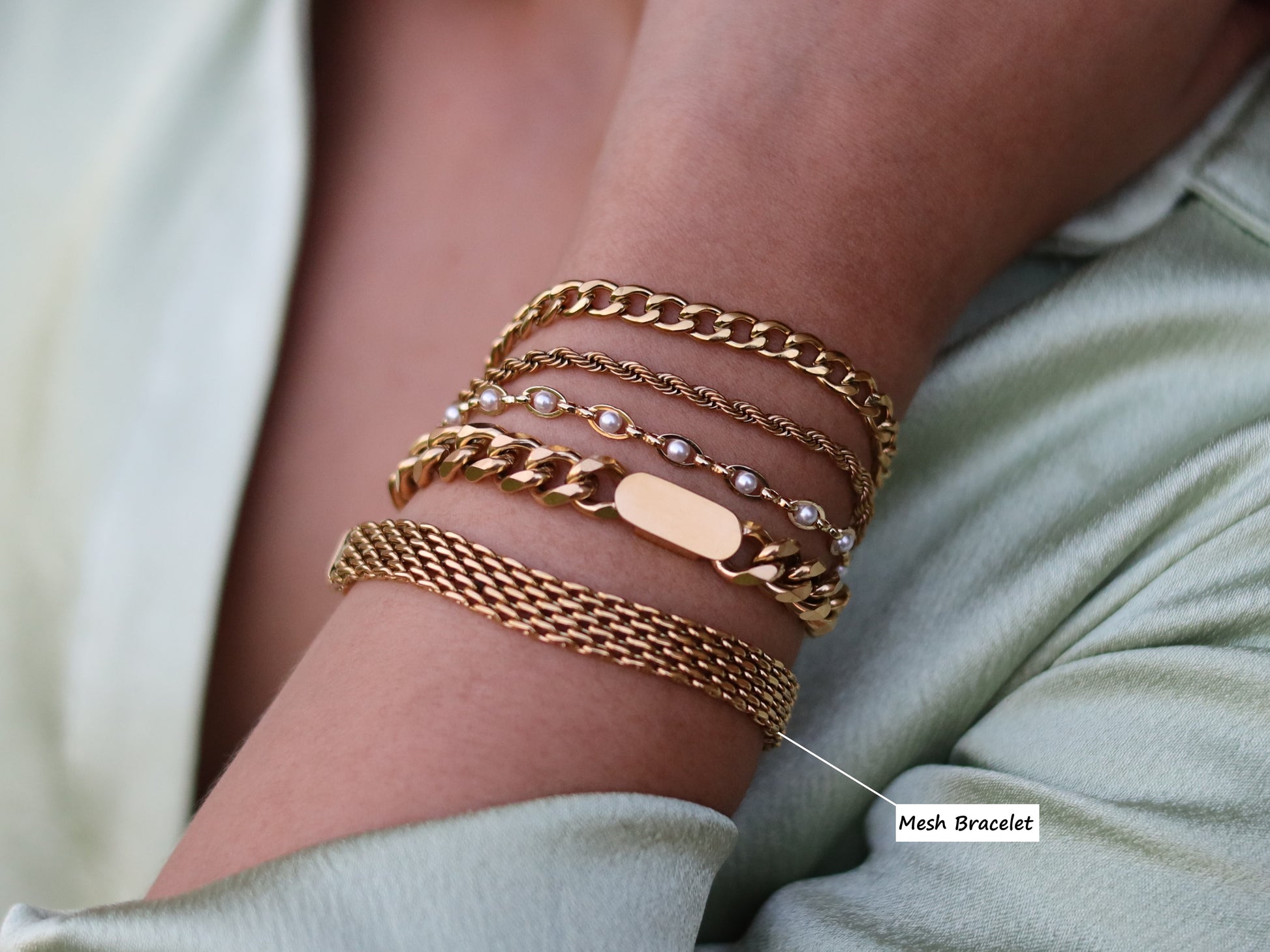 18K Gold Filled Vintage Mesh Bracelet in Adjustable Size